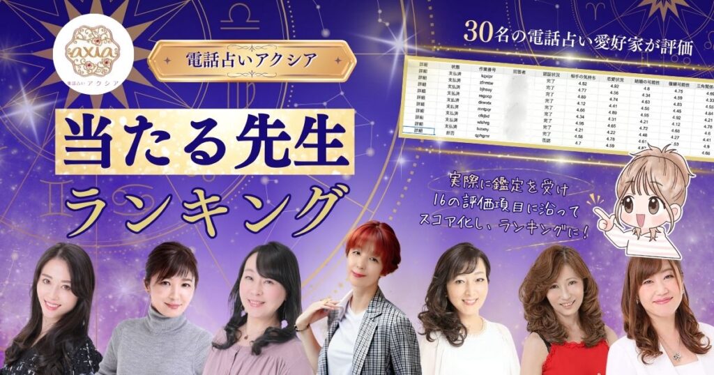 この記事では電話占いアクシアで、評判の当たる先生をランキング形式でご紹介します。またお得に利用できる電話占いアクシアの初回無料特典や、利用の仕方などについて詳しく解説しています。