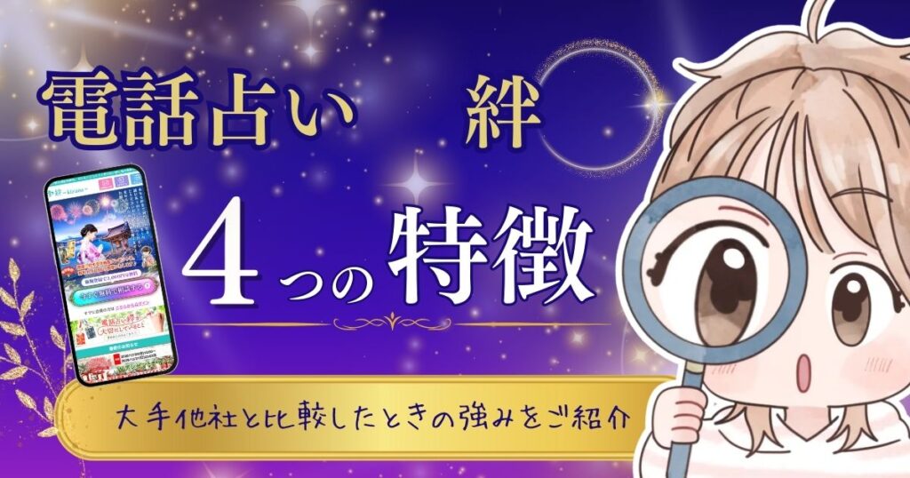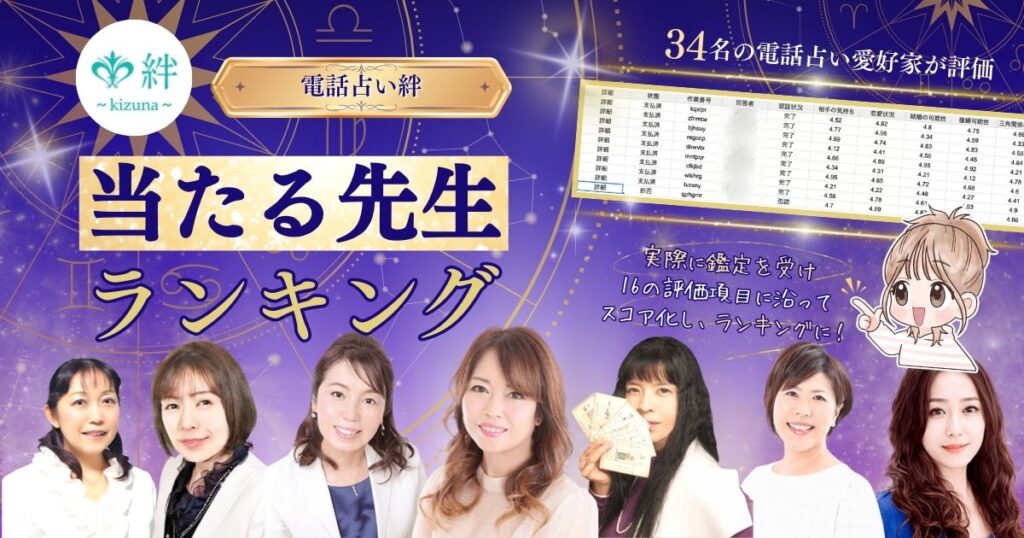 30代、40代から顧客満足度が圧倒的に高い電話占い絆の口コミや当たる占い師をわかりやすくまとめているので、ぜひ参考にしてください。