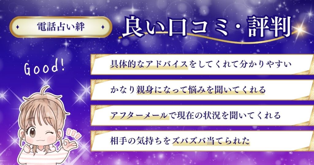 電話占い絆の公式サイトには、実際の利用者によるレビューが掲載されています。