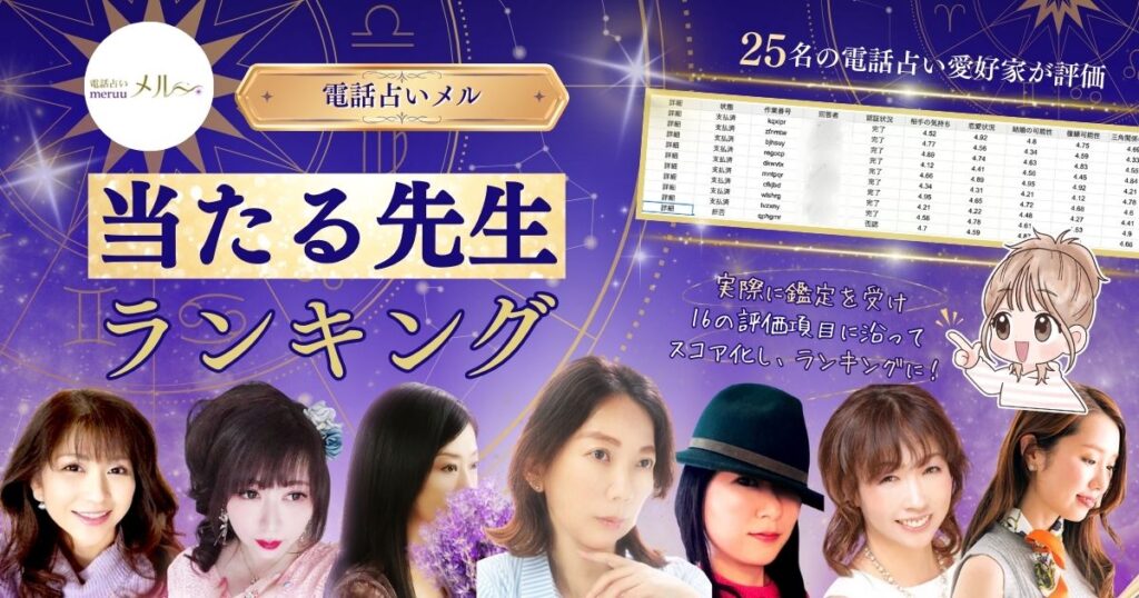 電話占いメルの当たる先生ランキング一覧