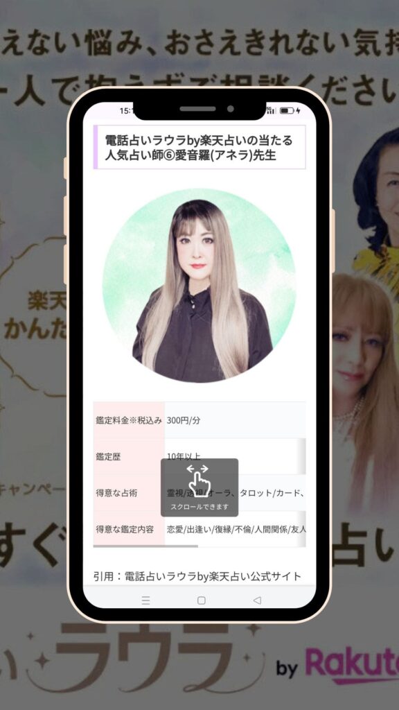 電話占いラウラは楽天グループが運営している、信頼性の高い電話占いサービスで、復縁や恋愛問題に強みのある占い師の鑑定を受けられるのが特徴です。